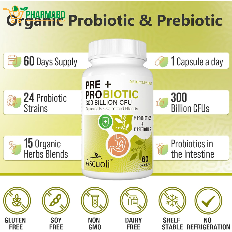 - Organic Pre And Probiotics For Health: Our Probiotic contains 24 Diverse Probiotic Strains, 15 Organic Herbs Prebiotics Blend, Synergistically working together to your gut health. These probiotics for women and men beneficial strains good for healthy digestion by nutrient absorption, gut, and bloating