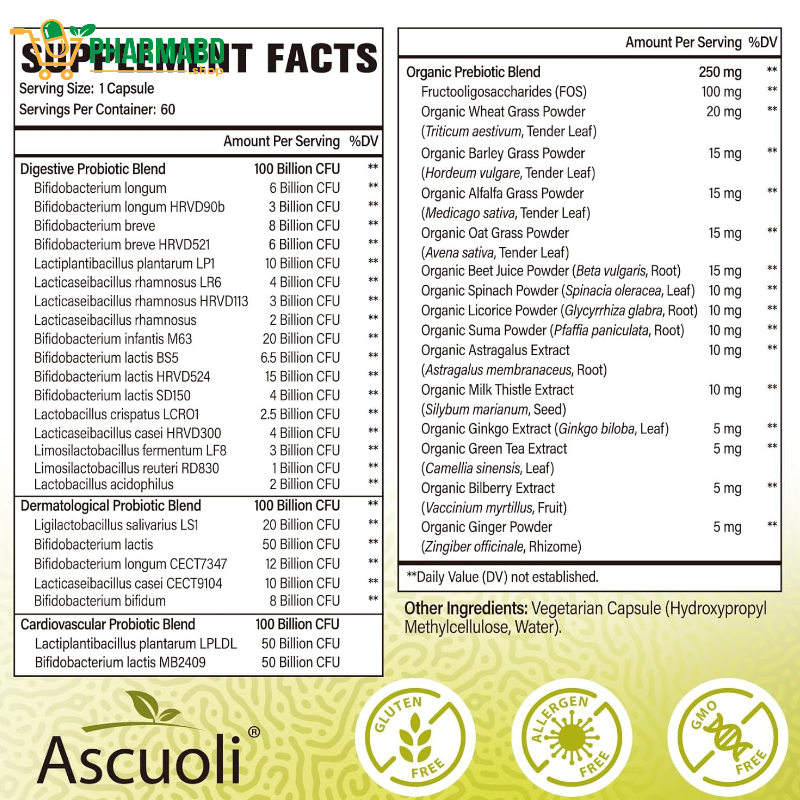 Ascuoli Probiotics for Women & Men 300 Billion 60 capsules