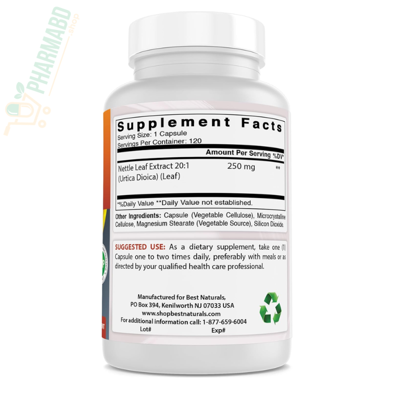 - Best Naturals Nettle Leaf Extract হলো একটি হার্বাল সাপ্লিমেন্ট, যা আসে Urtica dioica (স্টিংগিং নেটল) থেকে।