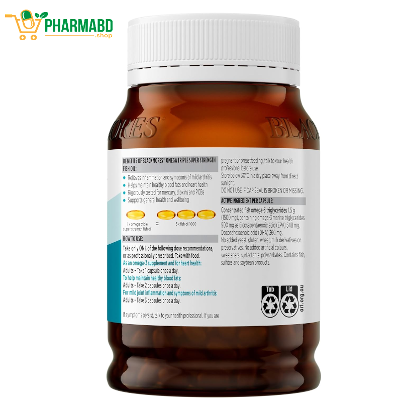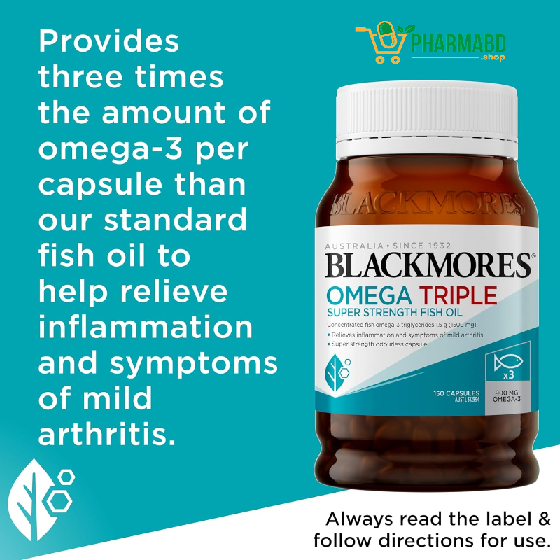 - এটি Blackmores-এর standard fish oil-এর তুলনায় তিনগুণ বেশি EPA & DHA দেয় — তাই মাত্র ১ ক্যাপসুলে বেশি প্রভাব পাওয়া যায়।