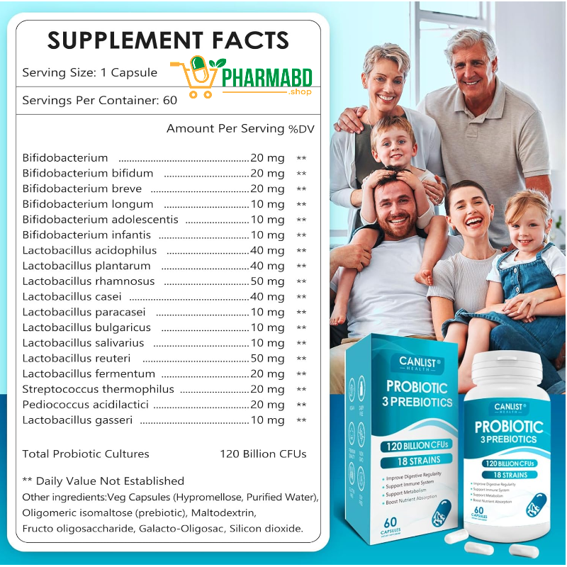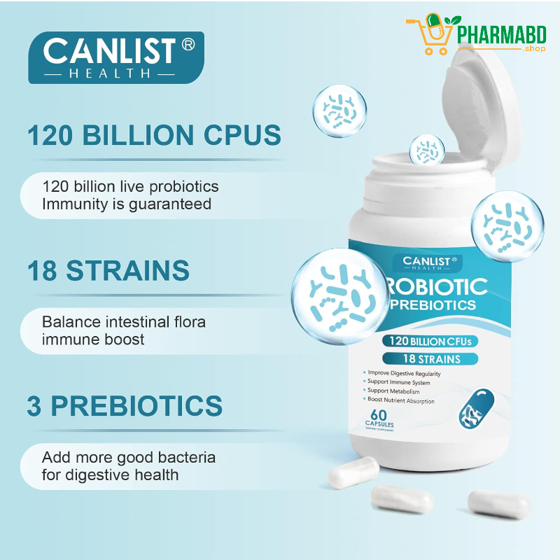 - 🔹 High Potency (120 Billion CFU). 🔹 Multi-Strain Formula. 🔹 Gut + Immune + Skin Support. 🔹 Antibiotic ব্যবহারের পর gut restore করতে কার্যকর. 🔹 Daily wellness এর জন্য ideal.
