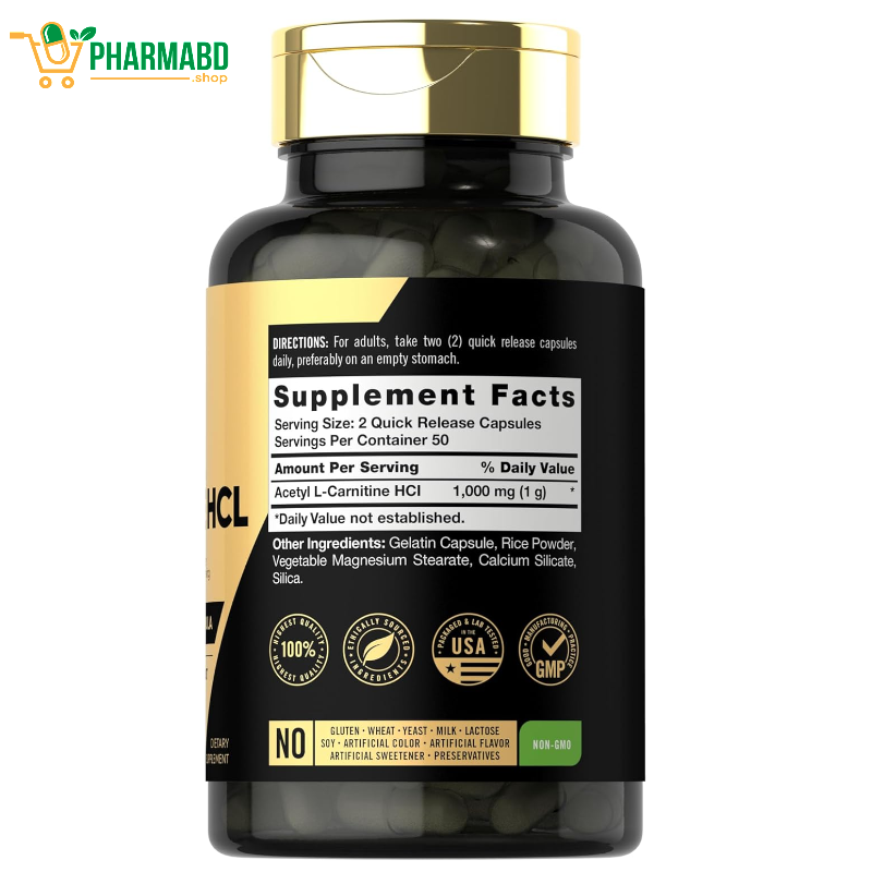 Ans: Acetyl L-Carnitine HCl. Other Ingredients: Gelatin Capsule, Rice Powder, Vegetable Magnesium Stearate, Silica, Calcium Silicate.