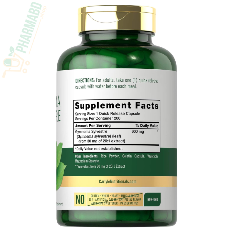 - At Carlyle, our high-quality formula features Gymnema Sylvestre, supplying naturally occurring gymnemic acids for superior antioxidant support. Gluten-free and non-GMO, our quick-release capsules make it super convenient to add this traditional herb to your daily routine.