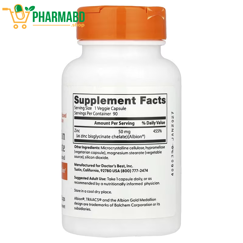 - Zinc Bisglycinate Supplement একটি উচ্চ শোষণযোগ্য জিঙ্ক ফর্ম যা শরীরের ইমিউন সিস্টেম, ত্বক, চুল ও নখের স্বাস্থ্য, এবং হরমোন নিয়ন্ত্রণে সহায়ক। এটি ইনফেকশন প্রতিরোধে কার্যকর এবং হরমোন ভারসাম্য বজায় রাখতে সাহায্য করে, তবে সঠিক মাত্রায় এবং প্রয়োজন অনুযায়ী ব্যবহার করা গুরুত্বপূর্ণ।