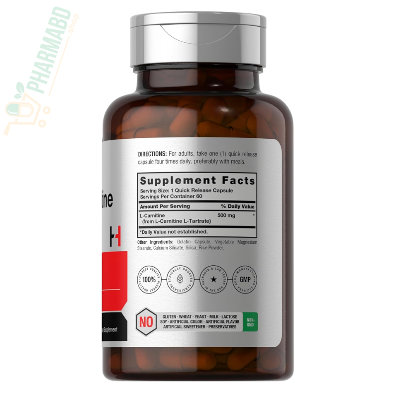 - Horbaach L-Carnitine is a premium source of this amino acid for a high-powered fitness routine. Quick-release capsules deliver 500 mg of free-form L-Carnitine (as L-Carnitine L-Tartrate), for maximum pre and post-workout nutritional support. Our formula is gluten-free and non-GMO, making it an exceptional choice for men and women athletes everywhere.