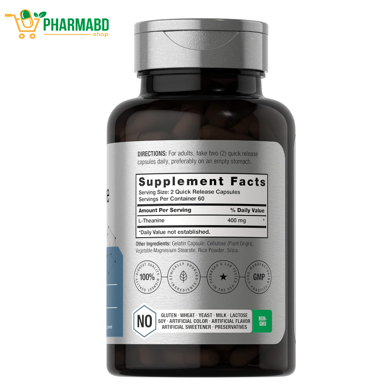 - Quick release capsules deliver 400 mg of L-Theanine per serving