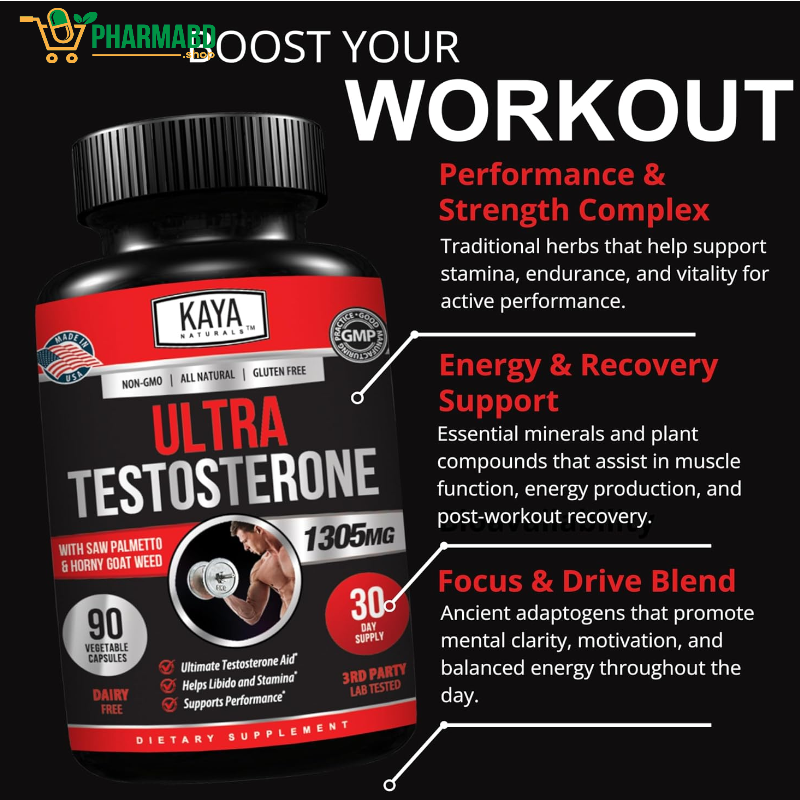 Kaya Naturals Ultra Testosterone 90 capsules Men's Testosterone Booster with Tongkat Ali, Horny Goat Weed, Tribulus