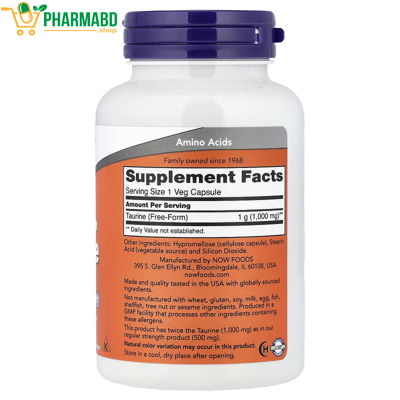 NOW Foods Taurine 1000 mg 100 Veg Capsules