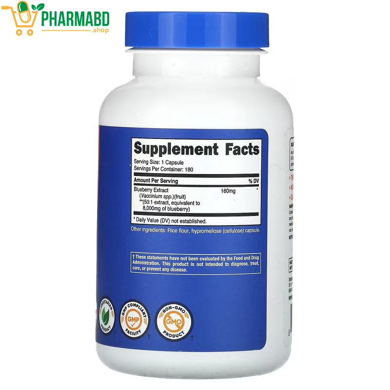 - Nutricost Blueberry Extract হলো উচ্চমানের ব্লুবেরি ফল থেকে তৈরি একটি কনসেন্ট্রেটেড অ্যান্টিঅক্সিডেন্ট সাপ্লিমেন্ট। এতে থাকে প্রচুর Anthocyanins, Polyphenols ও Vitamin C, যা শরীরকে ফ্রি র্যাডিক্যালের ক্ষতি থেকে রক্ষা করে।