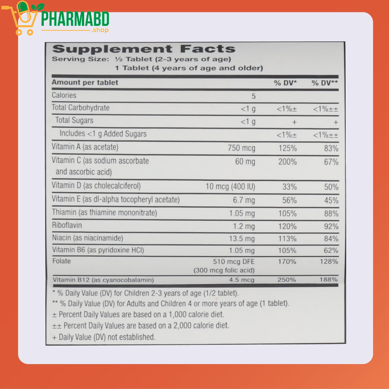 - Children’s Chewable Multivitamin হলো শিশুদের জন্য বিশেষভাবে তৈরি চিবিয়ে খাওয়ার উপযোগী মাল্টিভিটামিন সাপ্লিমেন্ট।