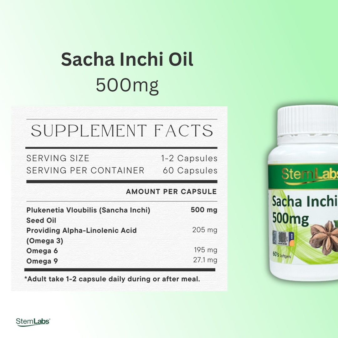 StemLabs Sacha Inchi Oil 500mg 60 softgels, Halal