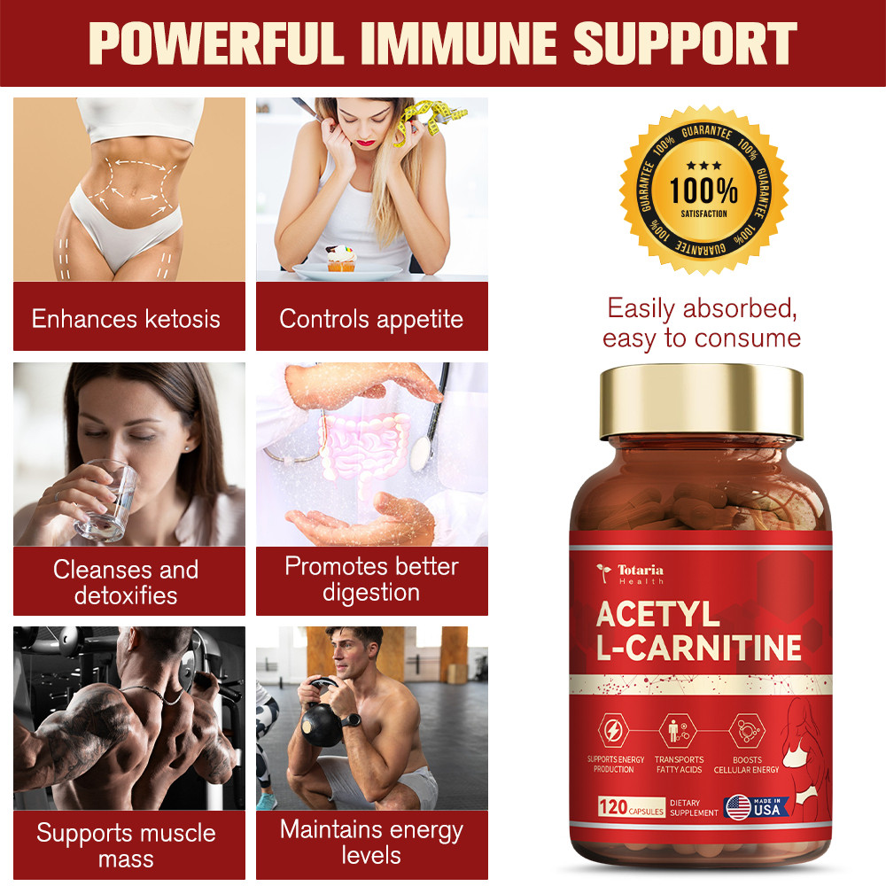 - Totaria Acetyl L-Carnitine হলো একটি শক্তিশালী dietary amino acid supplement, যা energy metabolism, brain & cognitive support, nerve health, mood ও fat metabolism-এ ভূমিকা রাখতে পারে। এটি blood-brain barrier পার করতে সক্ষম এবং শরীরের শক্তি উৎপাদন ও ব্যবহার সহজ করতে সাহায্য করে।
