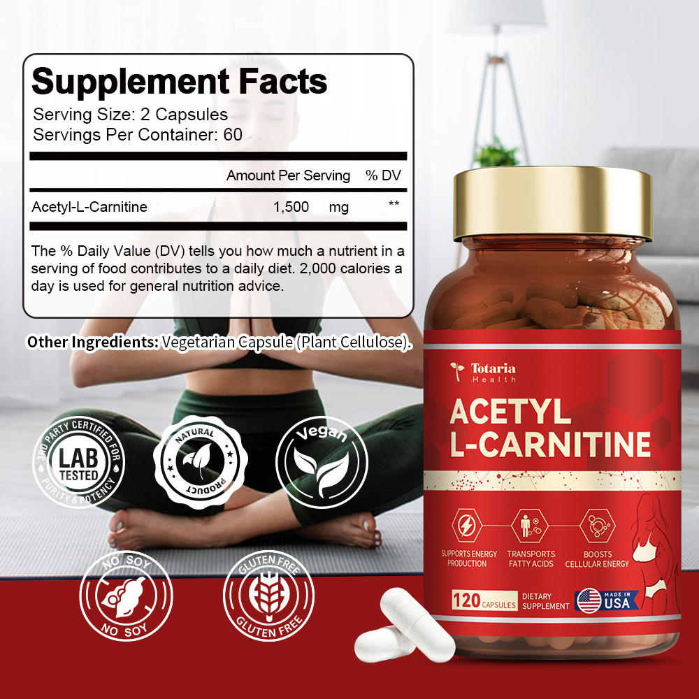 Totaria Acetyl L-Carnitine 120 Capsules Fat Burner Support