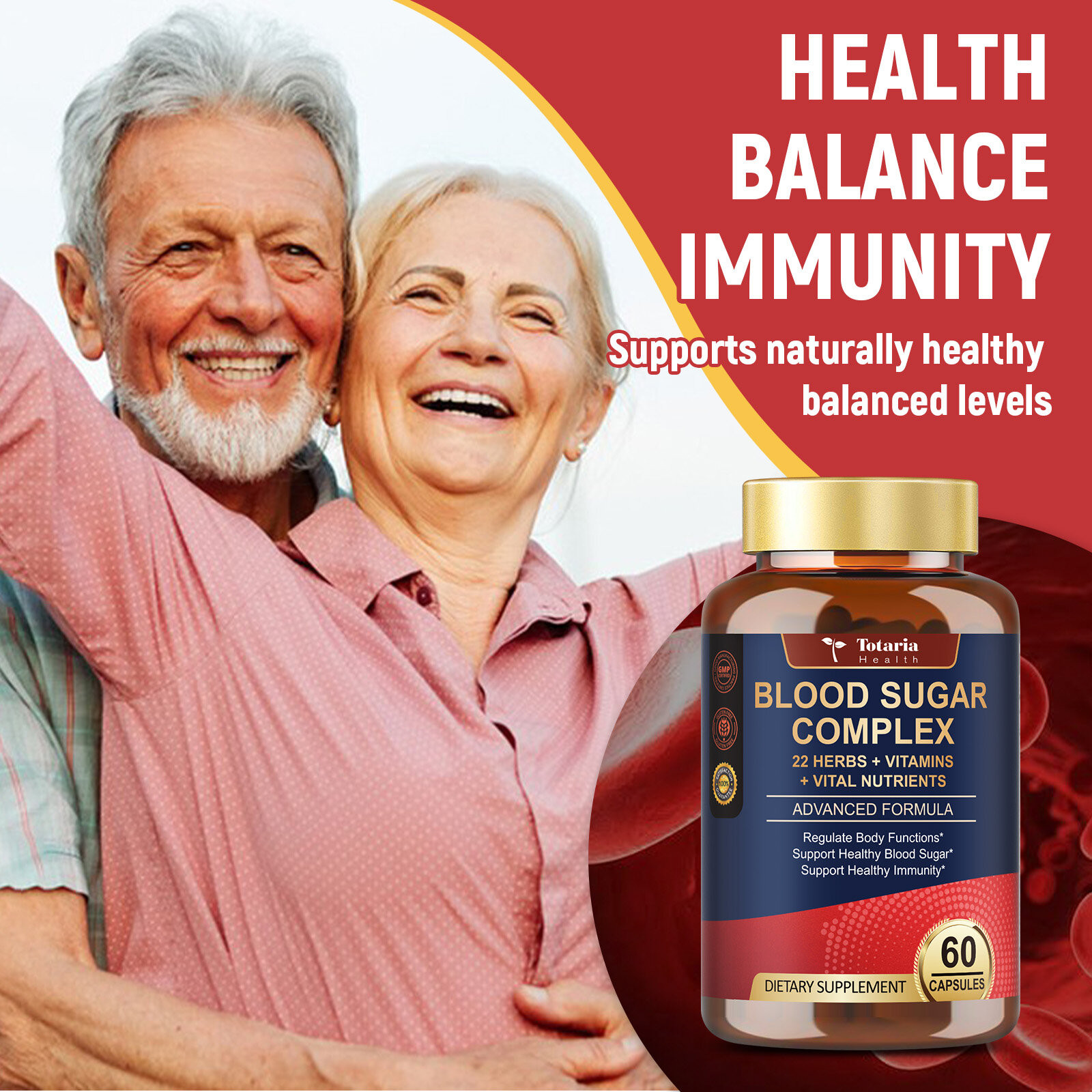 - Totaria Blood Sugar Complex হলো একটি ডায়েটারি সাপ্লিমেন্ট, যা 22টি ভিটামিন, মিনারেল ও হার্বাল উপাদানের শক্তিশালী মিশ্রণ দিয়ে তৈরী। এর উদ্দেশ্য হলো শরীরের স্বাভাবিক গ্লুকোজ/রক্তে শর্করা মেটাবলিজম-কে সামঞ্জস্যপূর্ণ দিকটিতে সমর্থন করা এবং সার্বিক জৈবিক কার্যকারিতা উন্নত করা।