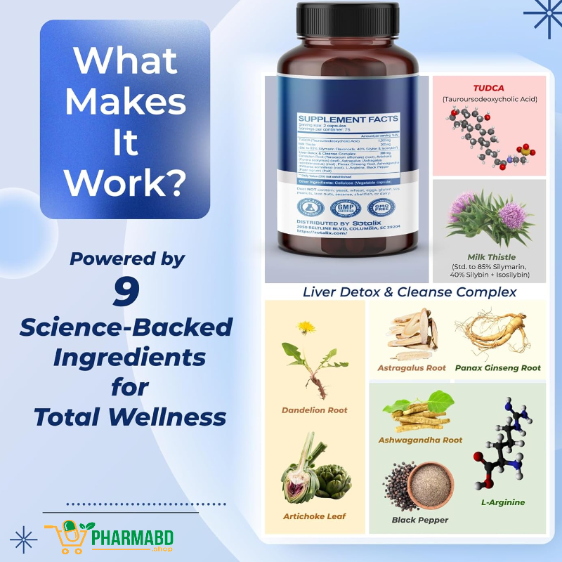 - 🧠 লিভার (যকৃত) সাপোর্ট ও ডিটোক্সিফিকেশন: TUDCA শরীরের পিত্ত স্রোত (bile flow) উন্নত করতে সাহায্য করে, যা লিভারকে toxins থেকে মুক্ত রাখে এবং এর স্বাভাবিক কার্যক্ষমতা শক্তিশালী করে।