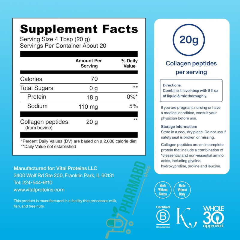 - Enjoy a supplement perfect for wellness regimens. Vital Proteins collagen peptides is made without gluten or dairy