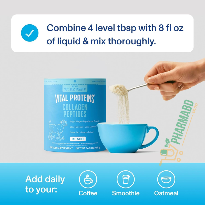 - Easily integrate our unflavored collagen peptides into your routine; it dissolves quickly in cold or hot beverages, such as coffee and smoothies