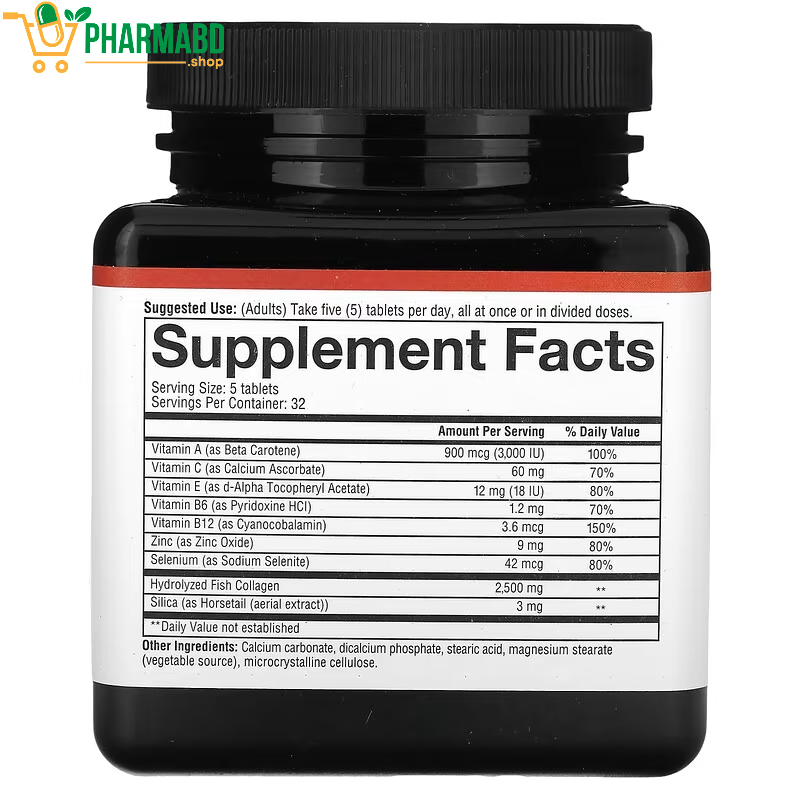 - 🔹 ত্বক টানটান ও উজ্জ্বল রাখে- Marine Collagen ত্বকের ইলাস্টিসিটি বাড়ায়, রিঙ্কল ও ফাইন লাইন কমাতে সহায়তা করে।